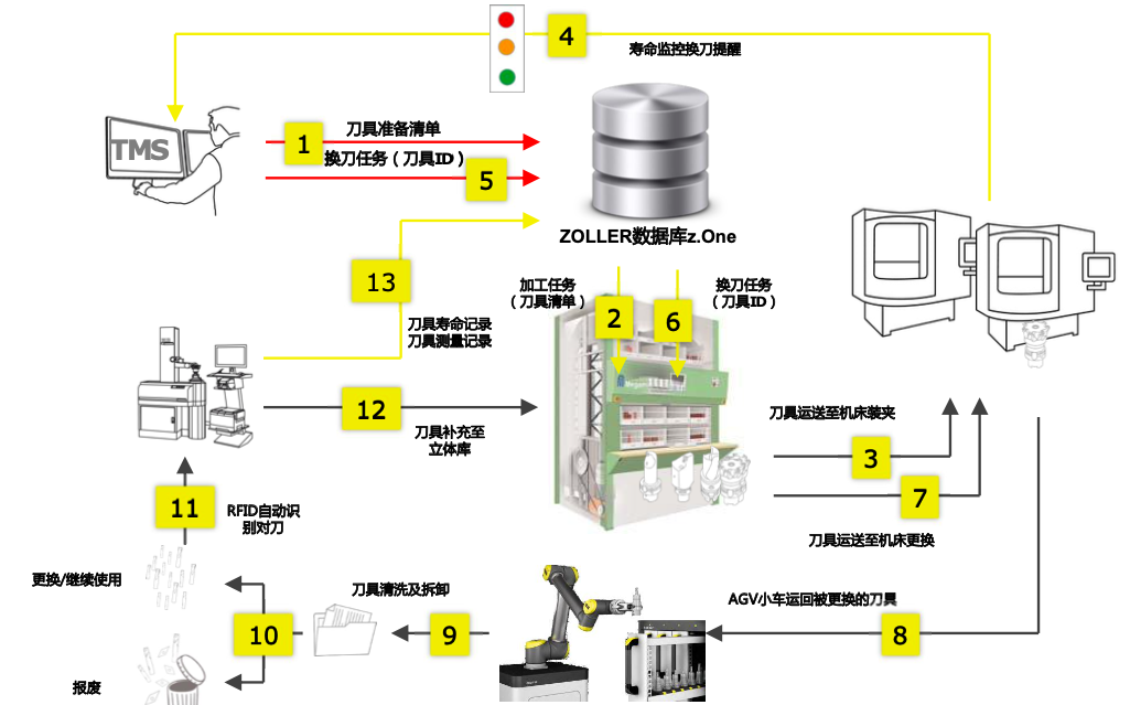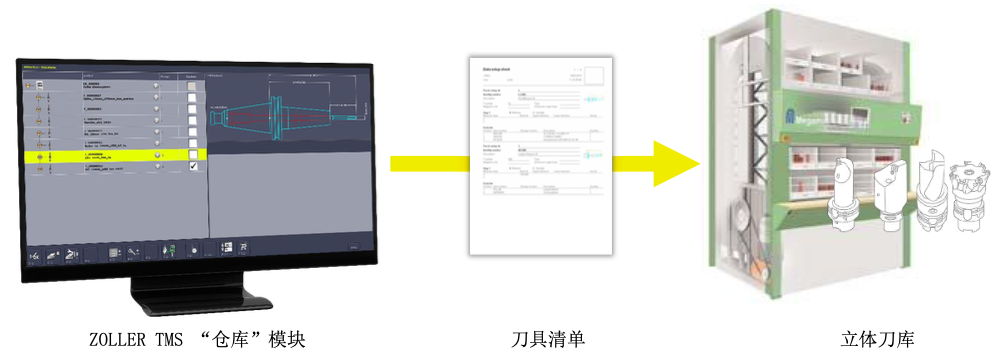 ? TMS將所需刀具清單通過(guò)接口發(fā)送至立體刀庫(kù)